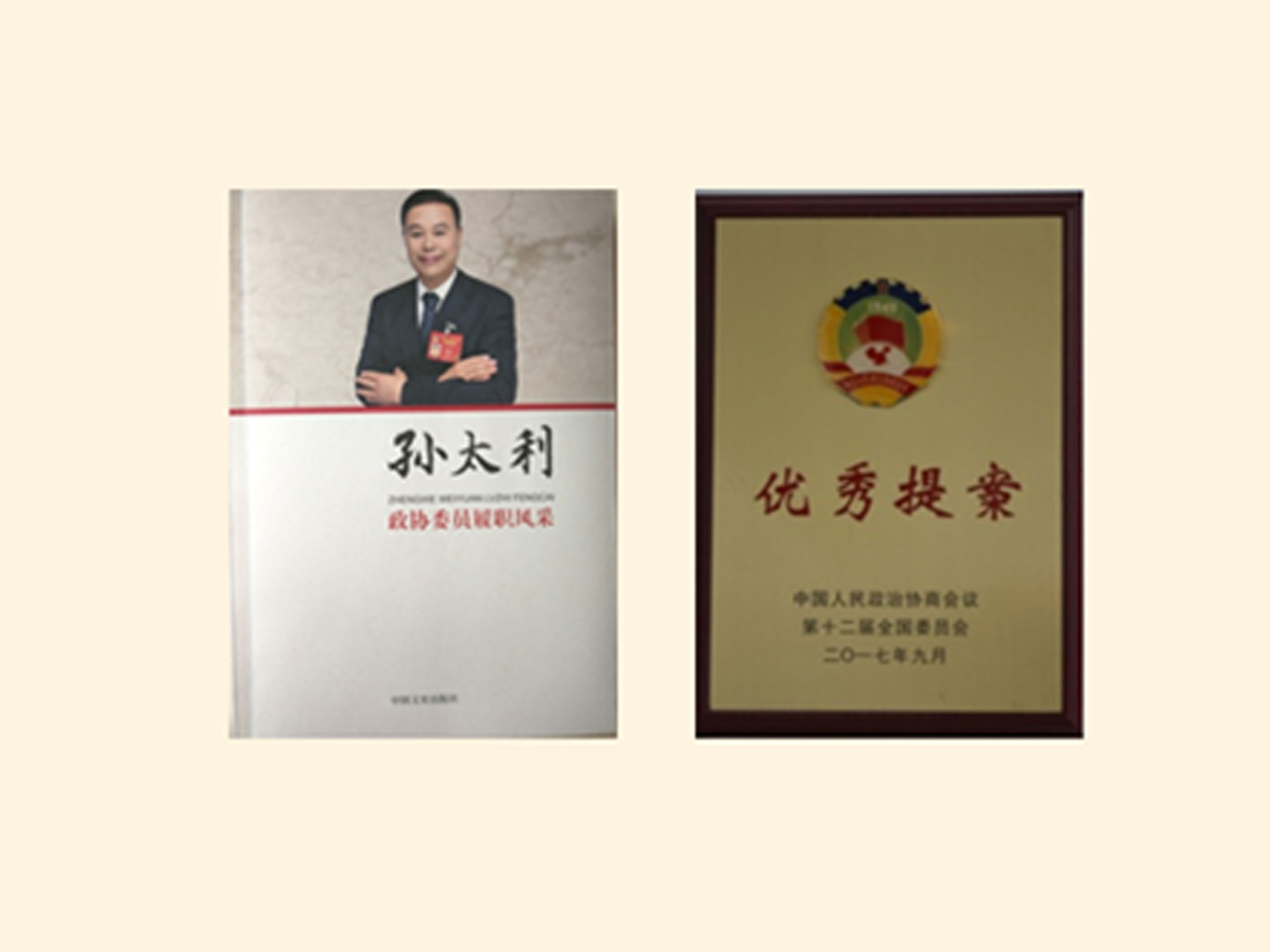 在黨的培養教育下,孫太利董事長當選了十一屆、十二屆和十三屆全國政協委員。 作為三屆全國政協委員,他堅持把“懂政協、會協商、善議政”作為自己的價值 追求,認真踐行政治協商、民主監督、參政議政、社會服務“四新三好”總要求, 以創新的精神建睿智之言、出務實之力,在全國政協提交了百余件提案。展現了 新時代政協委員“國是建言重如山,精準提案履職責”的新風采。